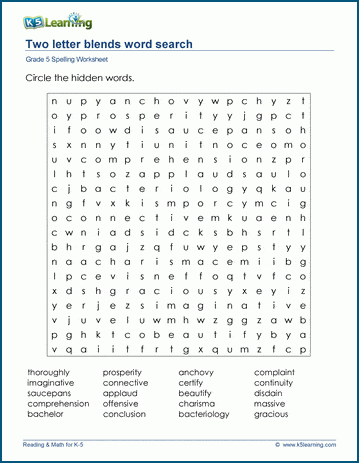 We've hidden grade 5 spelling words in these word searches. Words are grouped phonetically (blends, prefixes, suffixes).