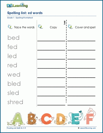 Students trace, copy and spell lists of spelling words containing e vowel sounds ed, en, er, et, ew, for example bed, men, her, get, new.