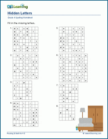 Students repeatedly spell each word by filling in missing letters. Students must work horizontally, one word at a time, for this worksheet to be effective.