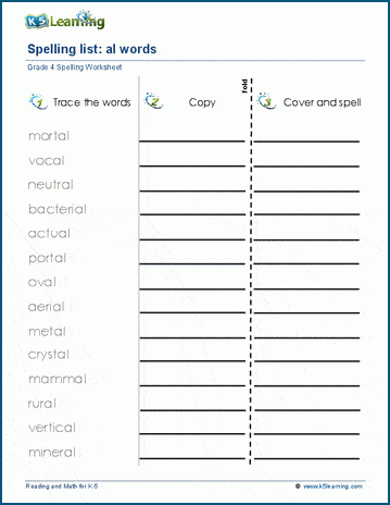Students trace, copy and spell words from our grade 4 spelling lists.