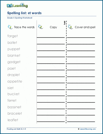 Students trace, copy and spell lists of spelling words containing the 2 letter blends et, ew, ge, ie & il. Example words: forget, chew, fudge, shield, tonsil.