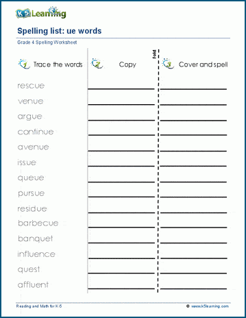Students trace, copy and spell lists of spelling words containing the 2 letter blends ue, ui, ur, wh & xc. Example words: rescue, suit, occur, which, excel.