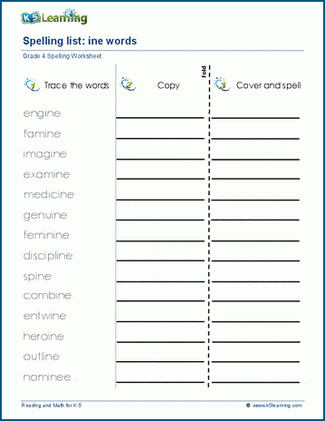 Students trace, copy and spell lists of spelling words containing the 3 letter blends ine, ise, ize, ory & ure. Example words: engine, advise, realize, ivory, structure.