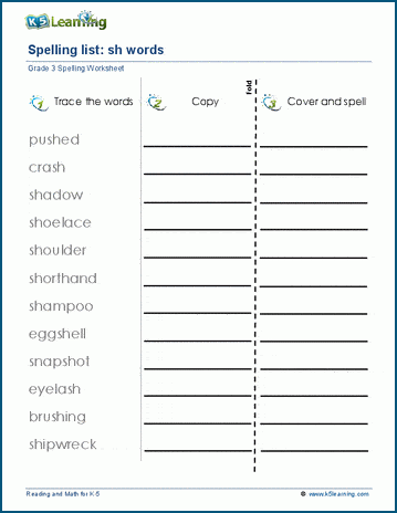 Students trace, copy and spell lists of spelling words containing the 2 letter blends sh, st, ur, wh & wr. Example words: crash, burst, burned, which, wrong.