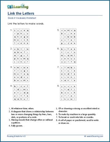 Word puzzles help students boost context fluency and improve their understanding of the meaning of words. In these worksheets, students find vocabulary words in a grid of letters, using the definitions of words as clues.