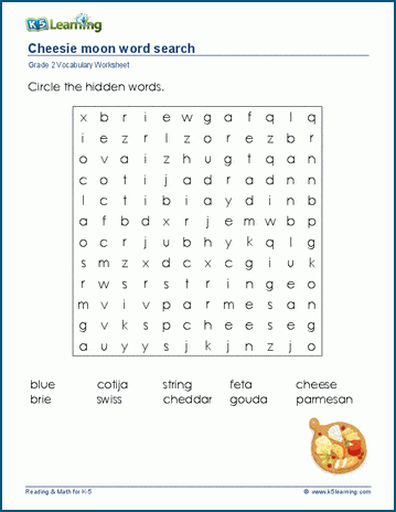 This word search has grade 2 vocabulary words related to cheese. Answers may read horizontally, vertically or diagonally; however, there are no backwards answers.
