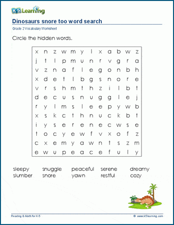 Worksheet #2This word search has grade 2 vocabulary words related to dinosaurs. Answers may read horizontally, vertically or diagonally; however, there are no backwards answers.