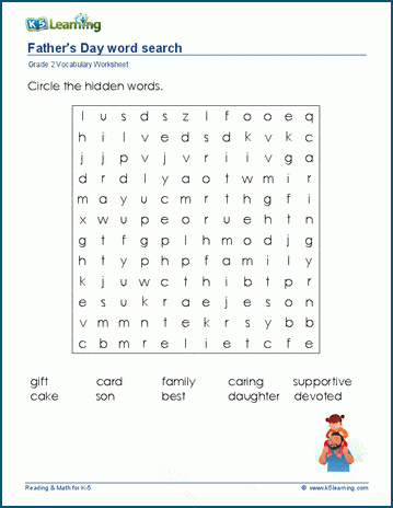 Worksheet #2This word search has grade 2 vocabulary words related to Father's Day. Answers may read horizontally, vertically or diagonally; however, there are no backwards answers.