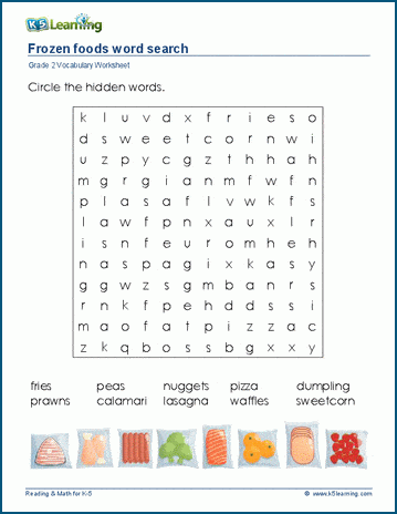 Worksheet #2This word search has grade 2 vocabulary words related to frozen foods. Answers may read horizontally, vertically or diagonally; however, there are no backwards answers.