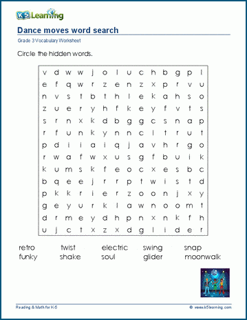 This word search is comprised of grade 3 vocabulary words related to dance. Answers may be horizontal, vertical or diagonal, forwards or backwards.