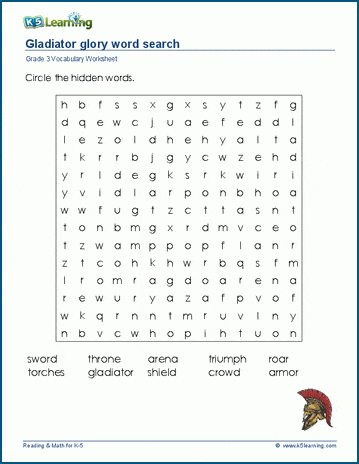 This word search is comprised of grade 3 vocabulary words related to gladiators. Answers may be horizontal, vertical or diagonal, forwards or backwards.